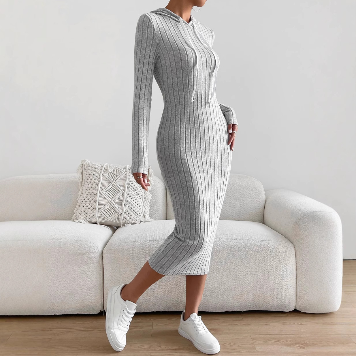Stickad långklänning med luva för dam – perfekt för bekvämt vardagsmode